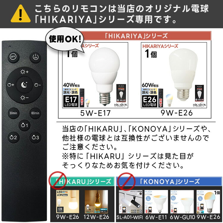 【調光調色 HIKARIYAシリーズ 専用リモコン】 タイマー メモリー グループ登録 簡単操作 無線式 省エネ 昼光色 昼白色 電球色 常夜灯 リモコン単品 【HIKARIYA-5W-E17/HIKARIYA-9W-E26に対応】