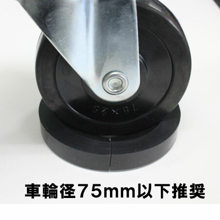 ■送料 送料込み 一部地域のみ別途送料がかかります。 ■特徴 ゴム製の車輪止め 台車のキャスターの固定に使用します。 スリット入りで、取り外し簡単! 厚みが10mmあり、裏面の滑り止め加工で脱輪を最小限に抑えます。 ■仕様 ・直径75mm ・厚さ10mm ・対応キャスター 50〜75mm ※本製品はキャスターの移動を防止するものですが、移動や転倒を完全に防ぐものではありません。 ※使用される床素材や環境によっては充分な効果を発揮できない場合もございます。 ※大規模地震に対する安全な移動・転倒防止策としては、他の耐震対策との併用をお願い致します。 ※地震等自然災害の際の保証等は、一切出来かねます。