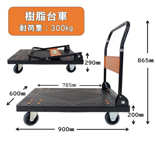 日本製 静音樹脂台車 折り畳み式(完成品) 900×600mm 300kg手押し台車/運搬台車/プラスチック台車/キャンプ/アウトドア/物流用品/