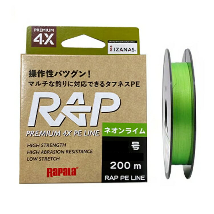 【 スーパーSALE限定 P5倍 】ラパラ PEライン ラップラインPE 200m 0.6号 0.8号 1.0号 1.2号 1.5号 12lb 14lb 18lb 20lb 25lb ネオンライム Rapala RAP LINE PE NEON LIME 釣り 釣具 釣り道具 フィッシング ライン PEライン 釣り糸