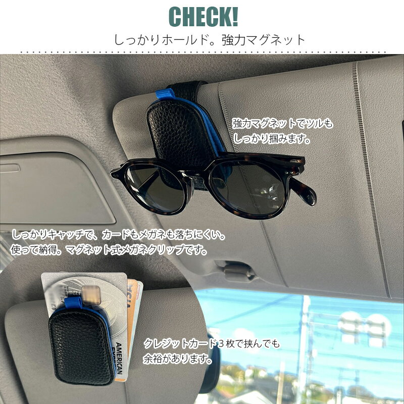 メガネホルダ車載 車用 収納 サンバイザー メガネクリップ メガネ サングラス ホルダー クリップ マグネット式 レザー カー用品 ケース 収納 KAN001066