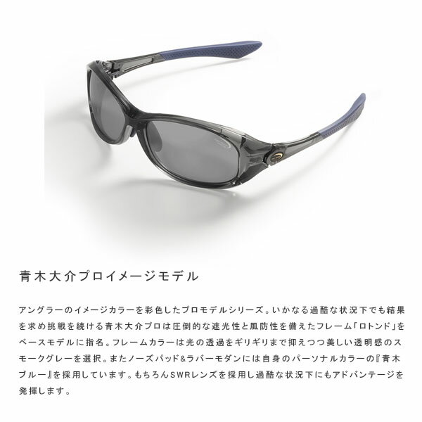 レンズカラー:スーパーライトグレー(SWRレンズ)プロカラーシリーズ ロトンド グレースモーク PRO Rotondo Gray Smoke PRO プロカラー・シリーズ 青木大介プロイメージモデル アングラーのイメージカラーを彩色したプロモデルシリーズ。いかなる過酷な状況下でも結果を求め挑戦を続ける青木大介プロは圧倒的な遮光性と風防性を備えたフレーム「ロトンド」をベースモデルに指名。フレームカラーは光の透過をギリギリまで抑えつつ美しい透明感のスモークグレーを選択。またノーズパッド&ラバーモダンには自身のパーソナルカラーの『青木ブルー』を採用しています。もちろんSWRレンズを採用し過酷な状況下にもアドバンテージを発揮します。 ブリッジ幅×レンズ横幅×レンズ縦幅×フレーム幅(mm) 17×64×40×147mm 8カーブ 機能 8カーブ アジャスタブルモダン フレキシブル蝶番 アジャスタブルノーズパッド SWR(Super Water Repellent)レンズ Sight Master ディーラー取扱製品 付属品 ケース、クリーニングクロス ※写真の色と実際の商品の色は多少異なる場合がございます。 ※商品画像はメーカー提供のサンプル画像です。 製品仕様・デザインは改良のため予告なく変更される場合がありますのでご了承ください。 この商品のお支払いはキャッシュレス決済(クレジット決済・ポイント支払い)のみです。 ・キャッシュレス決済(クレジット決済・ポイント支払い)以外をお選び頂いた場合、注文後の変更が出来ないため、ご注文のキャンセル処理をいたします。 ※ご注文後のお客様都合によるキャンセルや変更は承っておりませんので、ご確認の上ご注文をお願いいたします。 正規品 未使用新品 当店のブランド商品は全て本物です。安心してショッピングをお楽しみください。