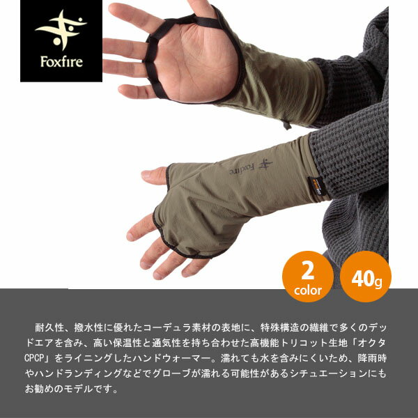 オクタリノハイドハンドウォーマーOcta Rhino-hide Hand Warmer耐久性、撥水性に優れたコーデュラ素材の表地に、特殊構造の繊維で多くのデッドエアを含み、高い保温性と通気性を持ち合わせた高機能トリコット生地「オクタCPCP」をライニングしたハンドウォーマー。濡れても水を含みにくいため、降雨時やハンドランディングなどでグローブが濡れる可能性があるシチュエーションにもお勧めのモデルです。●アングラーからの絶大な支持を得るEXハンドウォーマーに待望のOCTA版が登場 ●シェルには高撥水・高ストレッチのCORDURAを採用し耐久性の高さを追加 ●厚みのないOCTA裏はスリムなシルエットで操作性も高く肝心の保温力もUPColor:025ブラック・070オリーブSize:M・L・XL■Fabric:CORDURAストレッチリップストップ(ナイロン88%・ポリウレタン12%)/裏地:Octa?CPCP?メッシュ(ポリエステル100%)■Weight:40g Foxfireとは 1982年、フォックスファイヤーは4型のフライフィッシングベストからはじまりました。この日本でフライフィッシングのパイオニアとして活動してきた私達の知恵から生まれた作品でした。私達は、そのものづくりの知恵を様々なアイテムに投入し、四半世紀を経て現在の幅広いラインナップを揃えるアウトドアブランドへと発展してきました。その間一貫して取り扱ってきたテーマが「クワイエットスポーツ」です。 クワイエットスポーツとは、その名のとおり、自然の中で騒ぎたてることなく穏やかに楽しむスポーツのこと。フライフィッシングは代表的なクワイエットスポーツのひとつといえます。それは、「自然への挑戦」や「自然の征服」とは異なり、「自然との融和」「自然との共生」をなす知恵から発生しています。そして、それはフォックスファイヤー総てのもの造りの思想やテクノロジーに結びついています。 ※メーカーやモデル等によりサイズ感は異なります。サイズは目安としてお考えください。 ※写真の色と実際の商品の色は多少異なる場合がございます。 ※商品画像はメーカー提供のサンプル画像です。 製品仕様・デザインは改良のため予告なく変更される場合がありますのでご了承ください。 正規品 未使用新品 当店のブランド商品は全て本物です。安心してショッピングをお楽しみください。