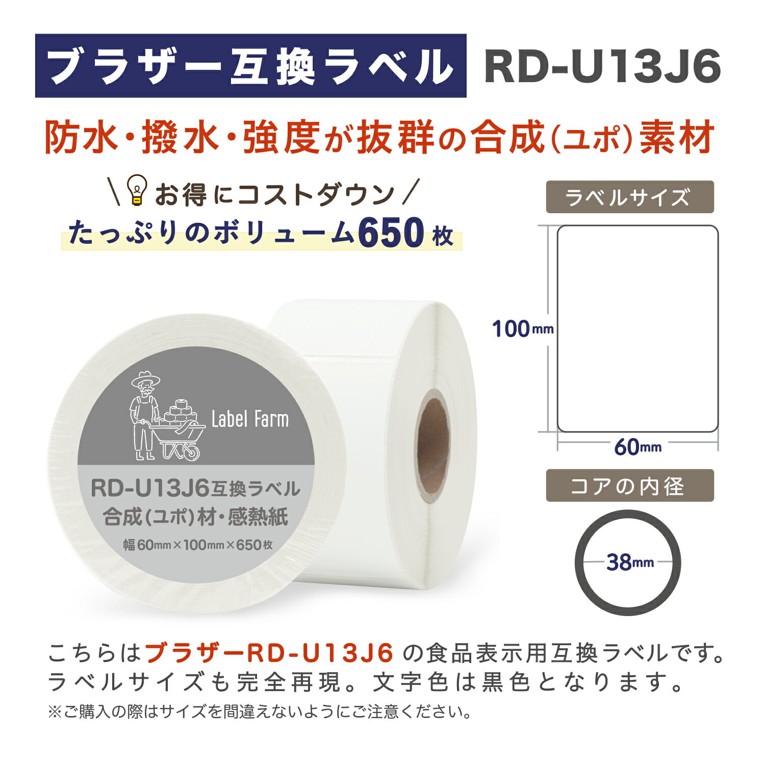 互換ラベル RD-U13J6 食品表示用ラベル ブラザー対応 RDテープ 互換ラベル用紙 カットラベル プレカット紙ラベル プレカットラベル 文具用品 オフィス用品 ユポ紙 感熱紙 防水 撥水 ラベルシール ラベルライター用テープ リフィル
