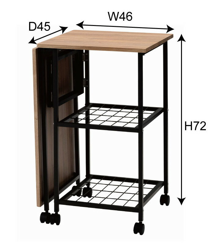 折りたたみ式 テーブル デスク 机 キッチンワゴン キャスター付き オープンラック付き 折畳み フォールディング 天板拡張式 バタフライ式 最大 107×45 レジ台 受付け カウンターテーブル ギミック家具