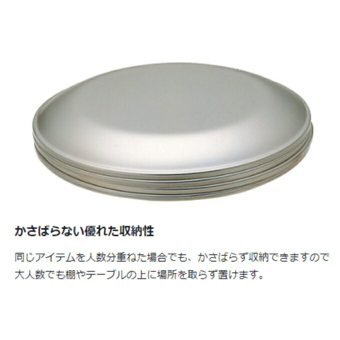 ソロの単独行やバイクツーリングなど最小限のギアを持つアクティブに最適です。スタッキング性能にも優れ、人数が増えても重ねて持ち運べます。 ■サイズ:φ212×18mm ■材質:0.4mm厚18-8ステンレス ■重量:133.8g 検索ワード: アウトドア キャンプ レジャー アウトドアグッズ キャンプ用品 キャンプ用食器 テーブルウェア BBQ バーベキュー 焚き火 ピクニック 食器 皿 お皿