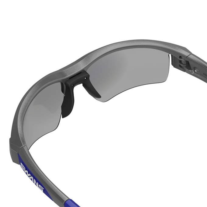 しなやかに掴むホールド感。 絶妙なフィット感と戦闘的なスタイルでアスリートに好評な「LION」シリーズ。 テンプルエンドがフレキシブルに動くので、頭部の形状に合わせてが調節可能。 頭を包み込むようなフレーム設計のためズレにくく、締めつけないフィッティングを実現します。 鼻パットは汗をかいてもずれ落ちにくく、肌触りも柔らかな大型ラバーを採用。 内部に金属の芯があるため幅広く、シビアな調節も可能です。 従来タイプのレンズとも互換性があるため、スペアレンズ(別売)をお持ちの方は流用できます。 お気に入りのフィット感のまま、様々なシーンに合わせたレンズチョイスが出来ます。 アスリートの求める視界を確保し、そのパフォーマンスを最大限にサポートする。 プロも認めるフルスペックのスポーツグラスです。 ■カラー:MGMR(マットガンメタリック×ネイビー×ネイビー) ■レンズカラー:0151/偏光スモーク(両面マルチコート) ■素材:フレーム/ナイロン、レンズ/ポリカーボネイト ■可視光線透過率:29%(偏光度:97%以上) ■紫外線透過率:0.1%以下 ■レンズ交換可能(別売) ■サイズ:高さ46mm / 横幅147mm ■重さ:32g ■レンズカーブ:8カーブ ■専用セミハードケース付属 ■原産国:日本 検索ワード: グラサン スポーツサングラス 偏光 偏光レンズ UVカット 紫外線カット アイウェア ドライブ スポーツ ゴルフ ランニング ジョギング 釣り テニス 野球 サイクリング スキー スノーボード