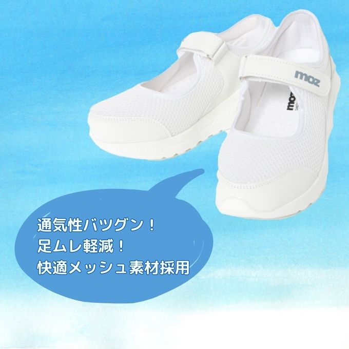 モズ moz オフィスシューズ ナースシューズ レディース 事務 病院 スニーカー 医療 看護 介護 MZHOR-1【ご自宅配送限定】‥ 疲れにくい 静音 衝撃吸収 カップインソール