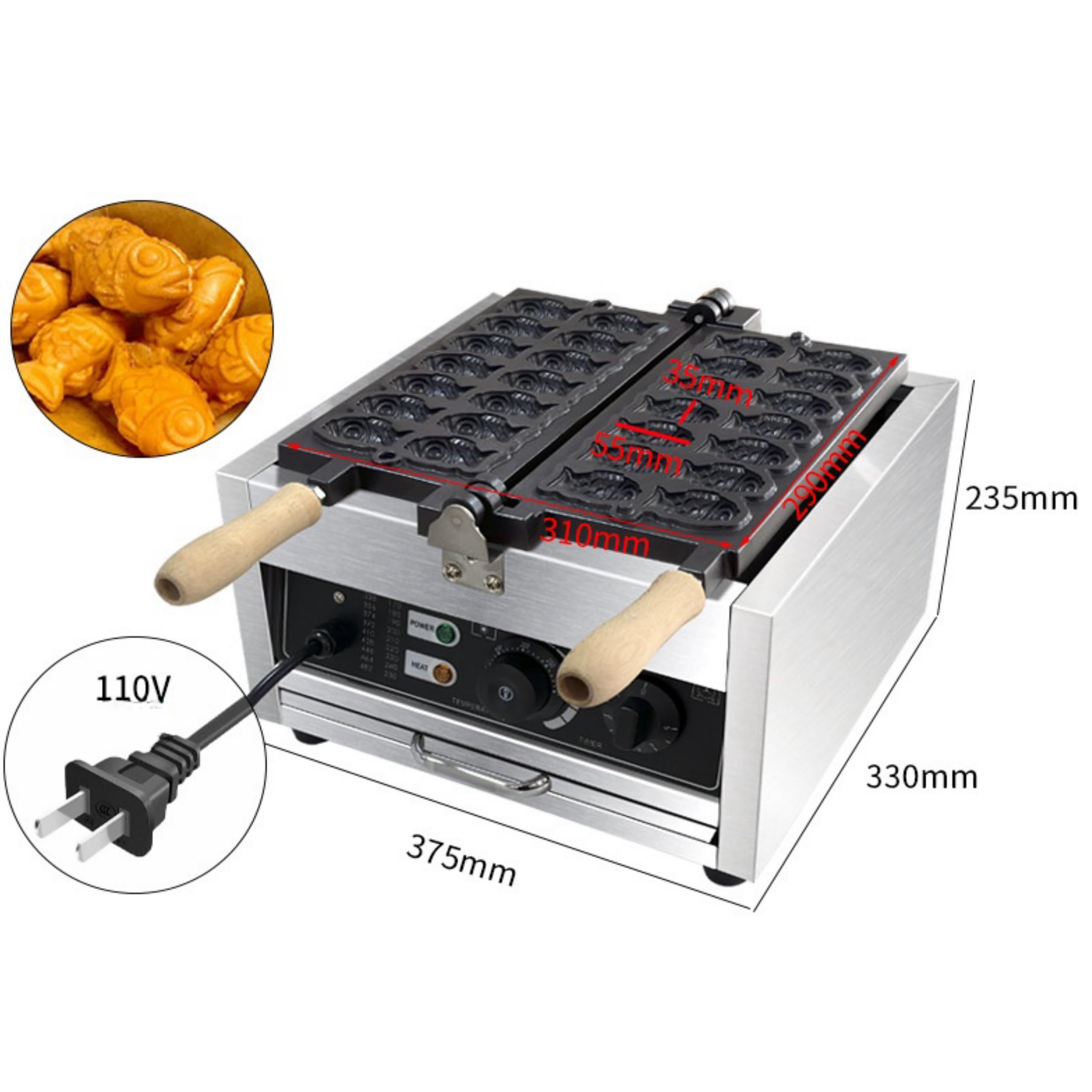 【ポイント3倍!11月限定!店舗の人気商品!】たい焼き機 たい焼き機 家用 商業電気たい焼き機 14穴ミニたいやき焼き器 電熱式 110V 両面加熱 たいやきメーカー 温度50-300℃、180°フリップ、ステンレス鋼素材 (シルバー)