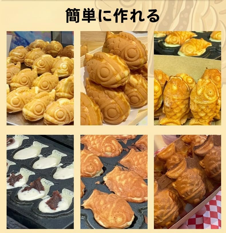 ? 14穴のミニたいやき焼き器:この電熱式たいやき焼き器は、14個のたいやきを一度に焼くことができるため、大量に調理したい方に最適です。1回で多くのたいやきを作ることができ、効率的に作業を進めることができます。? 両面加熱機能:両面加熱設計により、たいやきが均一に焼け、外はカリッと、中はふわっと仕上がります。加熱ムラを防ぎ、美味しいたいやきを手軽に作ることができます。? 高温調節機能(50℃~300℃):温度調整は50℃から300℃まで幅広く設定可能です。さまざまな焼き加減に合わせて温度を調整でき、より柔軟な調理が可能です。? 110V電圧、1500W高出力:110Vの電圧で、1500Wの高出力を誇り、短時間で均等に加熱が可能です。忙しい時間帯でも迅速にたいやきを作ることができ、店舗や家庭での使用に便利です。? コンパクトな設計と簡単な操作:このたいやき焼き器はコンパクトなサイズで、収納も簡単です。操作は非常にシンプルで、誰でも手軽に美味しいたいやきを焼くことができます。家庭用や小規模店舗に最適な製品です。商品名:電熱式14穴たいやき焼き器温度範囲:50~300℃商品サイズ:375×300×235mmプラグタイプ:10Aプラグ電圧:110V消費電力:1500W1個あたりのサイズ:55×35×15mm型のサイズ:310×290mmパッケージ内容:電熱式14穴たいやき焼き器×1この電熱式14穴たいやき焼き器は、温度範囲50~300℃で調節可能で、様々な焼き加減に対応します。コンパクトなサイズでありながら、一度に14個のたいやきを作ることができ、効率よく調理できます。1個あたりのサイズは55×35×15mmで、個別に焼き上げることができます。1500Wの高出力で、短時間で均一に加熱し、外はカリっと、中はふわっとした美味しいたいやきが作れます。10Aプラグと110Vの電圧に対応しており、安全に使用できます。家庭用や小規模な店舗での利用に最適な機器です。注:サイズは手作業で測定しているため、誤差が生じる場合があります。照明角度などにより写真と異なる場合がございますので、実際の商品をご参照ください。運送会社 佐川急便 日本郵便 ヤマト(指定はできかねます)通常、ご入金確認後7~10営業日(土日祝除く)以内に発送致します。大型商品はご入金確認後15~25営業日(土日祝除く)以内に発送致します。発送から到着まで、約2~3日かかりますが、郵便状況や地方によっては、遅れる場合もございますので、お急ぎの方はご入札をお控えくださいませ。 *商品にご満足いただけない場合は、まずはご遠慮なく当店にご連絡いただけますようお願い申し上げます。お客様にサービスを提供する機会をいただければ、最大限の努力をもってアフターサービスを行い、満足いただける対応をさせていただきます。出品商品はきちんとチェックして、問題のない商品を出品しておりますが、微細なほつれシワタグカットタグなし、タグ誤記載匂い微細な汚れ等がある場合がございます。完璧な状態やクォリテーをお求めの方はお控えください。 画像のお色に関しては出来るだけ現物に近いように努力しておりますが、 お客様の各パソコンのモニター、また撮影状況によって実際の商品とは 多少異なる事があります。ご理解頂いた上でご入札ください。注文日から3日後ご入金が頂いてなかった場合、キャンセルとさせていただきます。迅速、丁寧な対応を心がけておりますが、土日祝日など対応できない場合がございます。気持ちの良いお取引ができますよう努めます。取引終了までよろしくお願い致します。商品は基本的に組み立てが必要となります。組み立て不要の商品については、商品ページ内に明記しておりますので、ご確認をお願いいたします。商品が多いため、発送時に説明書をお送りし忘れることがございます。万が一、説明書が届いていない場合や、商品組み立てに関してご不明点がございましたら、お手数ですがご連絡いただけますようお願い申し上げます。電子版の説明書を再送させていただきますので、どうぞご安心ください。お客様にはご理解いただきますようお願い申し上げます。お客様のご支援が、私たちの励みとなっております。ますので、実際の商品をご参照ください。? 14穴のミニたいやき焼き器:この電熱式たいやき焼き器は、14個のたいやきを一度に焼くことができるため、大量に調理したい方に最適です。1回で多くのたいやきを作ることができ、効率的に作業を進めることができます。? 両面加熱機能:両面加熱設計により、たいやきが均一に焼け、外はカリッと、中はふわっと仕上がります。加熱ムラを防ぎ、美味しいたいやきを手軽に作ることができます。? 高温調節機能(50℃~300℃):温度調整は50℃から300℃まで幅広く設定可能です。さまざまな焼き加減に合わせて温度を調整でき、より柔軟な調理が可能です。? 110V電圧、1500W高出力:110Vの電圧で、1500Wの高出力を誇り、短時間で均等に加熱が可能です。忙しい時間帯でも迅速にたいやきを作ることができ、店舗や家庭での使用に便利です。? コンパクトな設計と簡単な操作: