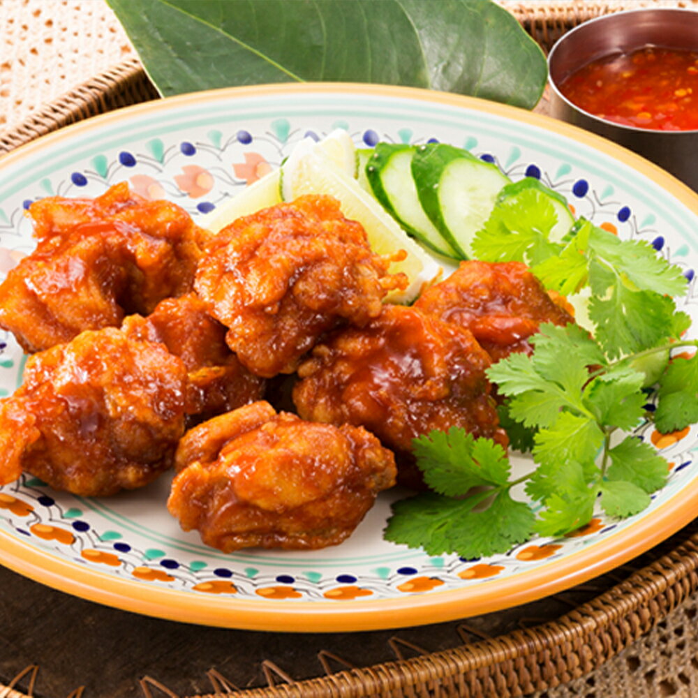 魚醤と海老の濃厚なうま味、レモングラスやこぶみかんの葉などで付与したエスニック特有の風味が特長です。 「甘味」「うま味」「酸味」の絶妙なバランスで、色んなメニューに相性よし!トムヤムクン風の味わいのたれです。 内容量(1袋あたり):500g 原材料名:糖類(ぶどう糖果糖液糖(国内製造)、砂糖、果糖ぶどう糖液糖)、醸造酢、魚醤、ライム果汁、唐辛子ペースト、アミノ酸液、えび調味料、 トマトペースト、レモングラス、食塩、カファライム、還元水飴、肉エキス、しょうが、ローレル、タイム、コリアンダー、にんにくエキス、酵母パウダー、 セロリ粉末、白胡椒/増粘剤(加工でんぷん、タマリンド)、調味料(アミノ酸等)、ソルビトール、酸味料、カラメル色素、アナトー色素、香辛料抽出物、 (一部にえび・大豆・鶏肉・豚肉を含む) 栄養成分100g当たり エネルギー 153kcal たんぱく質 3.0g 脂質 0.2g 炭水化物 34.7g 食塩相当量 4.6g アレルギー情報:えび、豚肉、鶏肉、大豆 ※北海道、離島、沖縄は別途送料がかかる場合がございます。