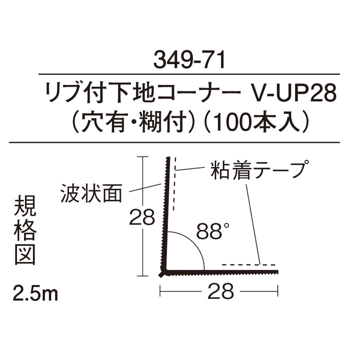 リブ付下地コーナーV−UP28 (穴有・糊付)(100本入)