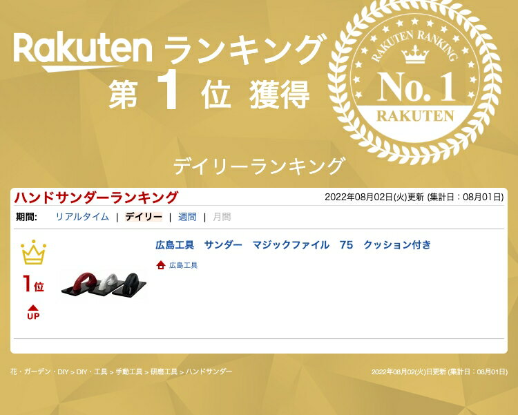 ハンドル、ベース共、大変軽量にできていますので、作業していても疲れません。 75mm幅のマジック式ペーパーにジャストサイズ。ピッタリサイズのサンダーです。 ・サイズ:巾75mm×長さ240mm×高さ69mm ・ハンドル部:木製クリア塗装 ・ベース部:ポリカーボネート ・クッション部:4mmウレタンゴム マジックペーパーは下記よりお選びください。↓↓↓マジックペーパー 小用3Mキュービトロン2 パテ研ぎシートスーパータック 小用 P40スーパータックロール関連商品広島工具 マジックファイル75 ウッド...広島工具 サンダー マジックファイル75 ウッド クッション付き...マジッククッション1,705円1,980円1,650円広島工具 ハンディーケレン広島工具 ブリッジファイル B-1(固定式取手)...広島工具 底目地サンダー2,178円4,730円1,331円広島工具 マジックファイル 小広島工具 マジックファイル ミニ広島工具 マジックファイル 753,190円2,948円1,760円スーパーサンダー3m キュービトロン2 パテ研ぎ シート パテ削り #120...広島工具 イエローマジックペーパー 75mm 50枚...2,860円2,750円2,420円マジックファイル75 クッション付きベース部分に4mmのクッション材をつけたタイプです。サンドペーパー取付面は、面ファスナー(マジックテープ)が貼ってあり、取付、取り外しが簡単です。