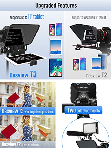 Desview T3 テレプロンプター スマートフォンタブレット デジタル一眼レフカメラ 11インチ Padの携帯電話用ポータブル テレプロンプター キットリモコン&レンズアダプターリング付き YouTube/インタビュー/ビデオ録画用