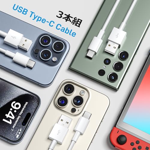 USB Type C ケーブル 短い 20cm/3本 タイプcケーブル 最大3A 急速充電 持ち運び 高耐久 断線防止 データ転送 usb type c iPhone17/16/15シリーズ、iPad Mini/Pro、Galaxy S10/S9/Note10/9/S20/A22/A21/A20、Xperia、Google