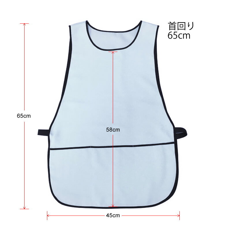 ■商品の仕様 ●サイズ/幅45×丈65cm、首下:58cm ●サイズ(首周り)/65cm ●重さ/110g ●材質/ポリエステル100% ●生産国/日本 ●洗濯機可 ●脱水機可 ●乾燥機可 ●ポケット付き ●メーカー/亀屋 ■商品の説明 ・被るだけの簡単なエプロンです。