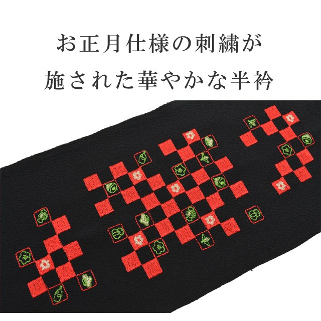 半衿 刺繍半衿 半襟 正月 あけおめ刺繍衿 着物 成人式 結婚式 日本製 ラミエール 黒 sin8043-bob11 彩小径