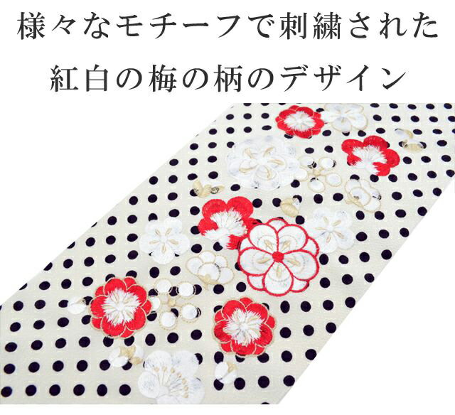 振袖 振袖用 半衿 刺繍 ふりそで はんえり 彩小径 成人式 入学式 卒業式 日本製 CHARA 梅 水玉 白色 sin8297-bob12