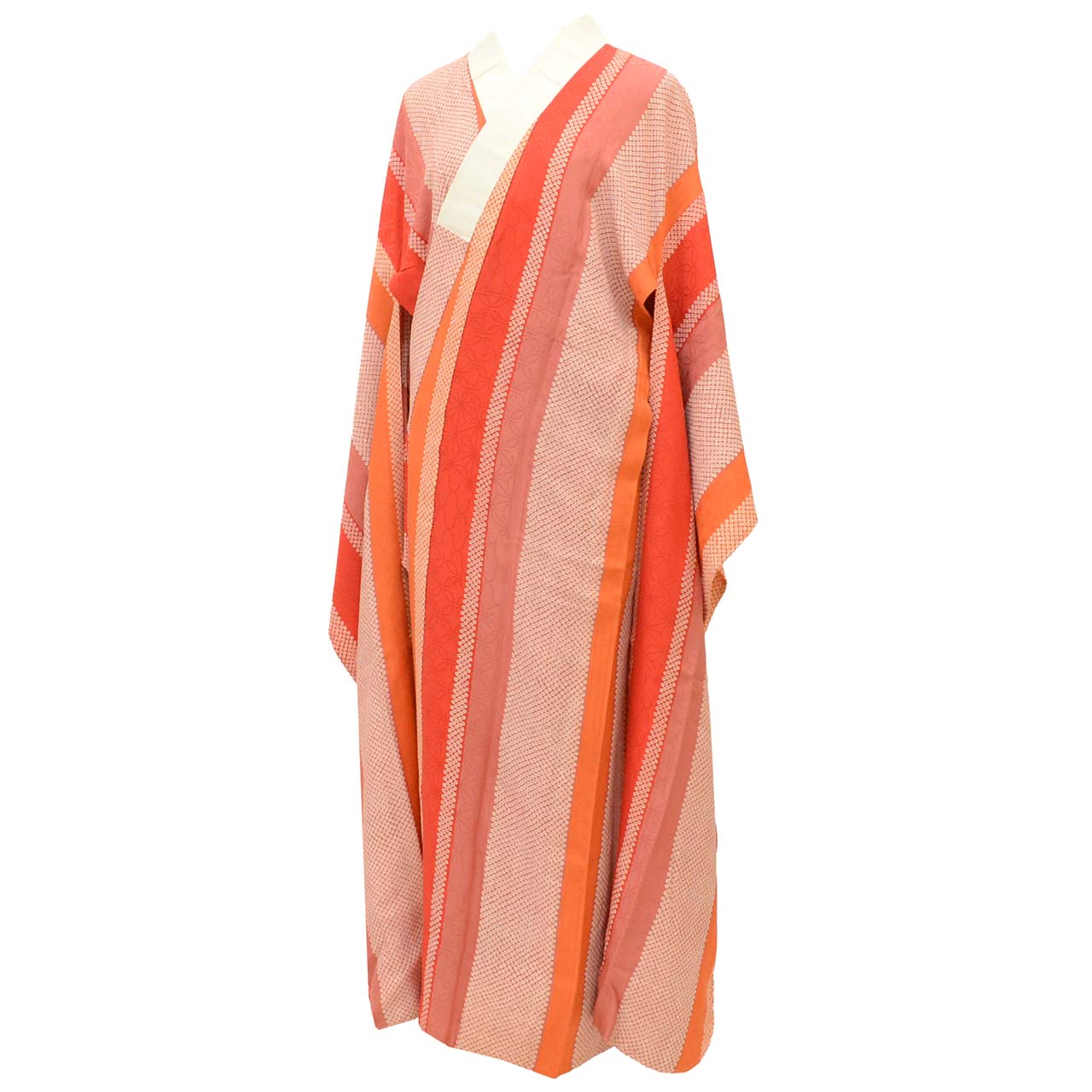 \ スーパーSALE限定×20%OFF / 【中古】 長襦袢 袖無双 振袖用 正絹 リサイクル長襦袢 仕立て上がり 裄65.5cm 身丈131cm 赤色系 麻の葉 鹿の子文様 レディース uu1949b