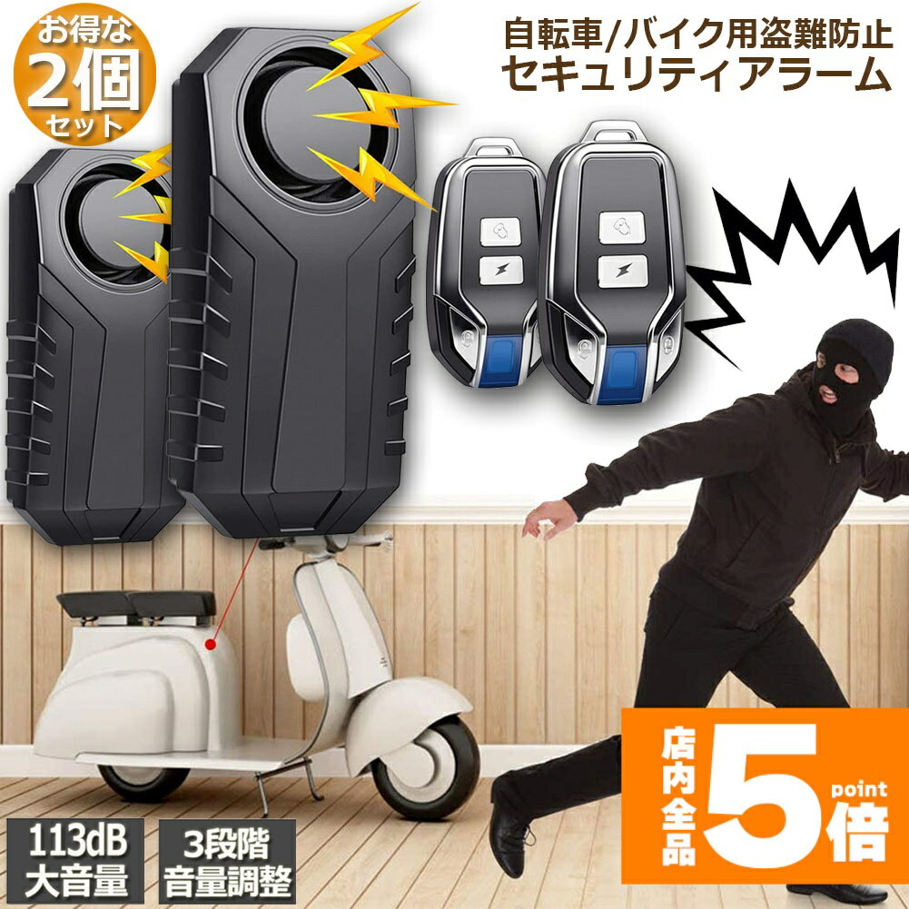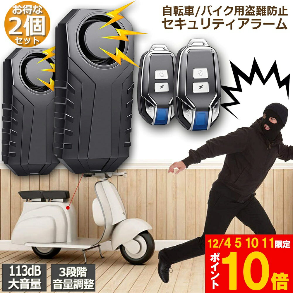 ★期間限定!ポイント5倍&10倍★バイク 防犯アラーム 2個セット自転車 防犯ブザー バイク盗難防止 グッズ 防犯ブザー 3段階音量調整 7段階振動感度 車セキュリティアラーム リモートコントロール 振動アラーム IP55防水 侵入防止 1
