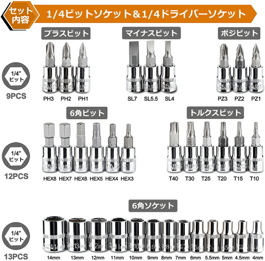 ソケットレンチセット 2点セット 46点セット 差込角6.3 1 4インチ 車レンチ スリーブ ラチェットレンチ ソケットドライバー組み合わせ ツール 車 バイク DIY 工具セット 作業セット 専用収納ケース付き ガレージツールセット 送料無料