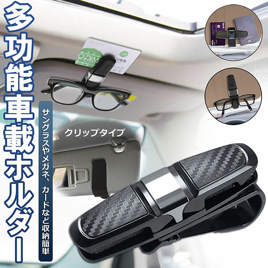 サングラスホルダー メガネホルダー カードホルダー 車用 クリップオン サンバイザー サングラス カーボン柄 車用収納ケース カード入れ 車 カードホルダー 多機能車用品 収納ホルダ 送料無料