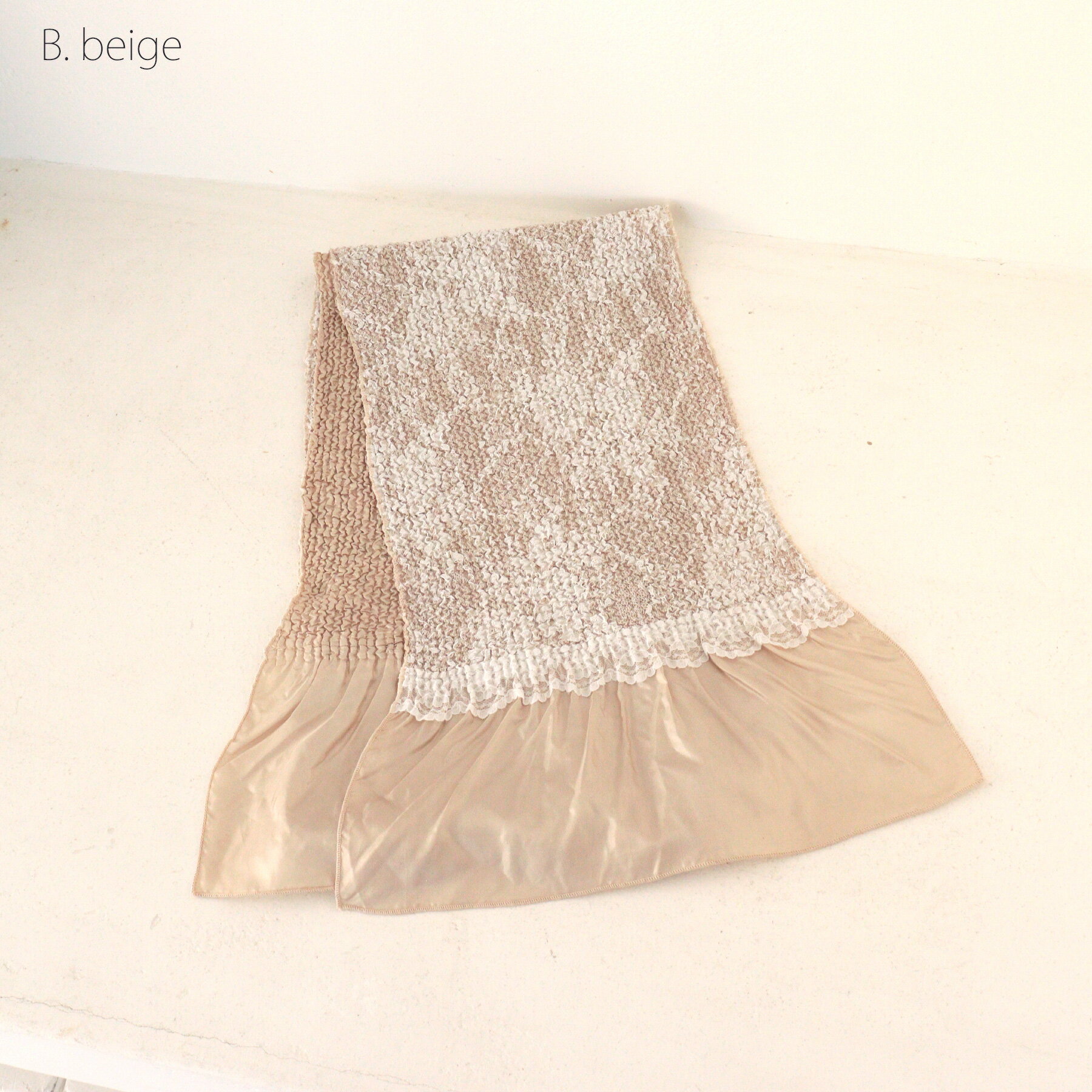 [商品画像について] ※商品画像はできる限り実物を再現するよう心掛けておりますが、お客様のモニターや閲覧環境によって大きく色味が異なる場合があります。 [商品在庫について] 商品在庫は他店舗販売と共有しているため、更新のタイミングにより在庫切れの場合はやむをえずキャンセルさせていただく可能性があります。■ Description / Delivery レースをまとった帯揚げで振袖コーデをもっと楽しく。特別な日にぴったりのアイテムです。繊細なお素材ですのでお取り扱いにはご注意ください。 ---------------【 配送について 】--------------- [ 配送種別 ] 宅配便のみ ■ Detail [ 素材 ] ポリエステル100% [ 適応サイズ ] フリーサイズ [ 実寸サイズ ] 長さ:約165-180cm(伸縮あり)幅:約21-30cm(伸縮あり) [ 機能・特性 ] [ 原産国 ] 中国
