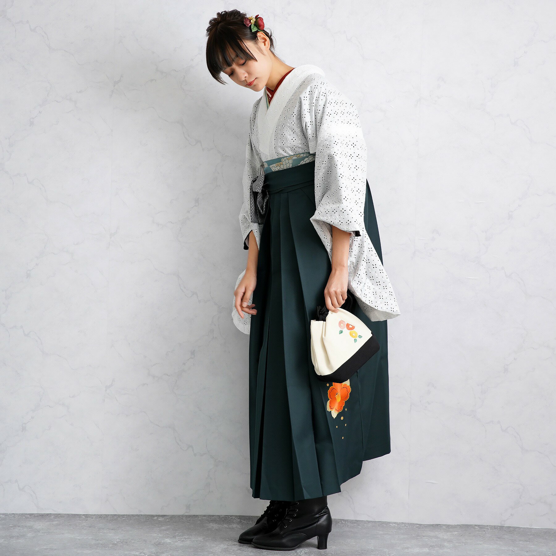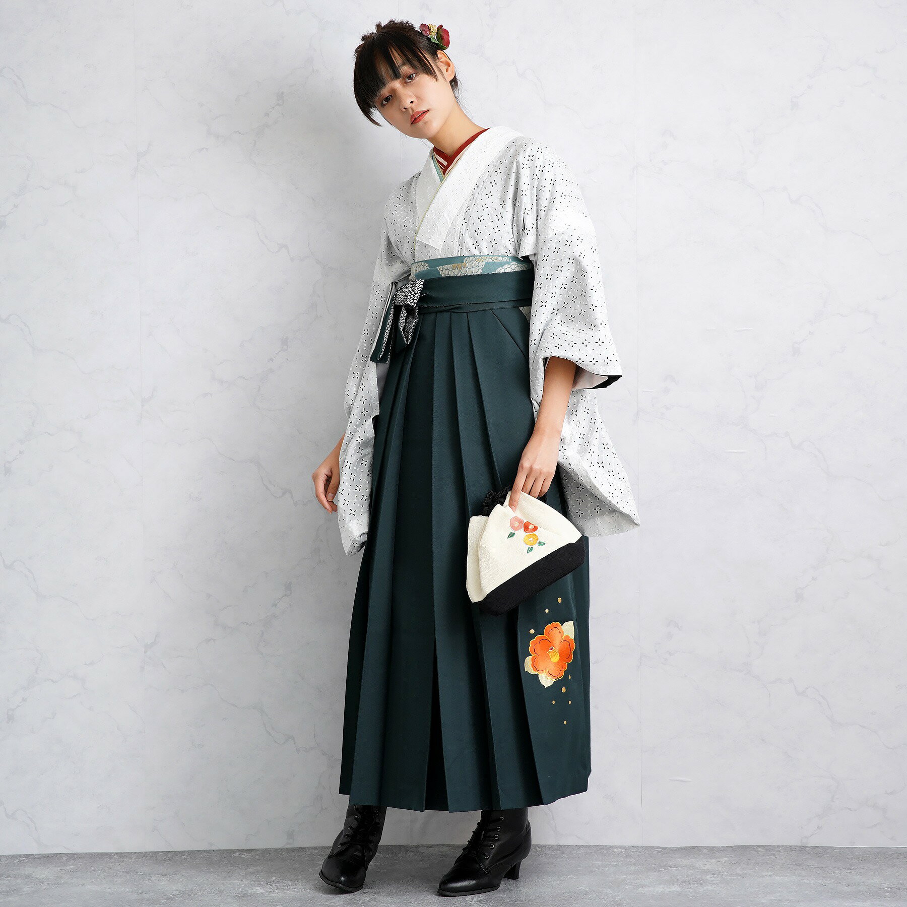 【リサイクル着物セット】2尺袖着物 袴 2点セット 袴99cm(身長163-170cm) 袴セット 卒業式 大学生 着物 女性 中古 USED 販売 着物と袴の2点セット 謝恩会 おしゃれ レース 白系