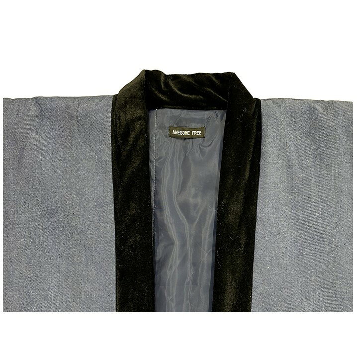 【送料無料】男性用デニム風はんてん M-L LL あたたか 暖かい 中綿入り 半天 半纏 防寒 デニム調 無地
