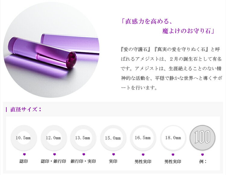 【送料無料】2月誕生石・宝石印鑑・アメジスト・紫水晶・女性実印 おしゃれはんこ 印鑑・はんこ/実印・銀行印・認印/サイズが選べる【12.0-15.0mm】実印 女性 男性 ハンコ いんかん 就職祝い 祝い プレゼント 人工石 【紫水晶名入れ印鑑 印鑑ケース付き】ネコポス発送