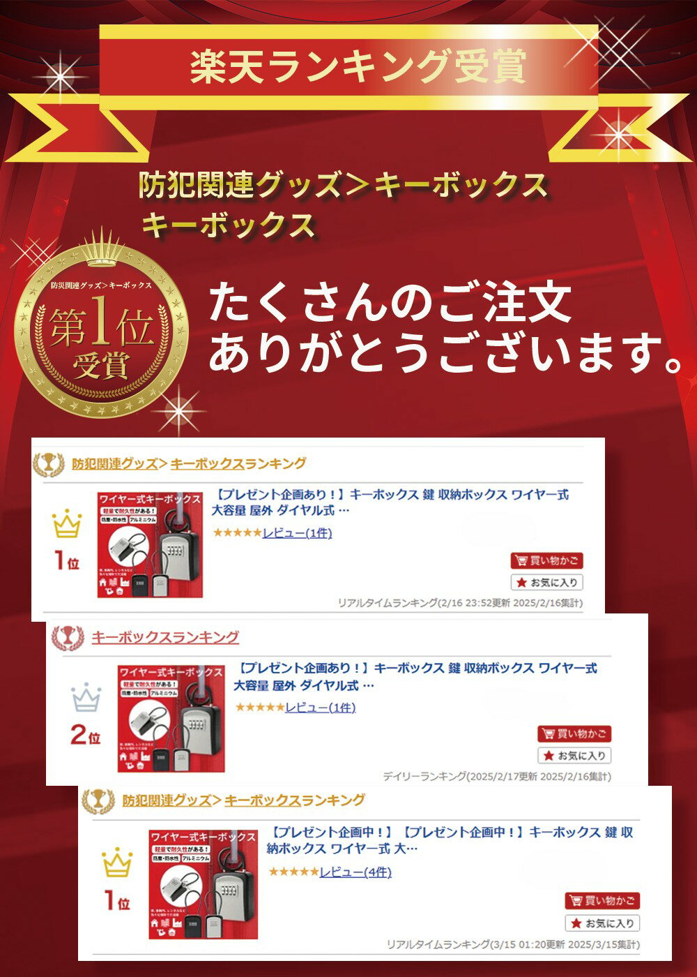 商品名 ワイヤー式キーボックス キーボックス 鍵 収納ボックス ワイヤー式 【送料無料!楽天倉庫から年中無休で迅速出荷】 キーボックス セキュリティボックス セキュリティキーボックス キーケース 収納ボックス 鍵 カード USB 鍵収納 U字ロック 大容量 屋外 玄関 ダイヤル式 防犯 盗難防止 暗証番号 貴重品 壁掛け 防水 アパート マンション 事務所 倉庫 工事現場 ショップ セキュリティ キーボックス ケーブル式 壁掛け 鍵収納 ボックス 南京錠 ロック ポケット ダイヤルロック 4桁ダイヤル式 小物 キー収納 カギ管理 カギ収納 印鑑収納 防水 大容量 インテリア オシャレ 小型 暗証番号 オフィス アパート マンション 事務所 車 玄関 倉庫 会社 家庭 金庫 屋外 工事現場 現地対応 鍵の保管 防犯 盗難防止 侵入対策 安全 便利 鍵収納ボックス 大型サイズ 防犯 盗難防止 4桁暗証番号 強化合金鍛造 キー収納 オフィス アパート グレー ブラック 便利 しっかり 便利グッズ 丈夫 耐久性 スポーツ施設 手軽 簡単 便利 持ち運び便利 高品質 安価 人気 超軽量 手軽 家庭 快適 日常 アウトドア 図書館 病院 ランキング おすすめ 大人気 Airbnb 非磁性 ICカード 電子キー 送料無料 鍵ボックス キーボックス 壁掛け キーボックス 玄関 サーフィン 鍵ボックス 置き 鍵 ボックス 鍵 収納 ボックス キーボックス ダイヤル式 商品詳細 ●4桁のダイヤルは約10000通りに簡単に設定が可能 ●前面、本体ともにアルミニウム合金を採用しており高耐久性 ●本体裏面に取付等の穴がない為、防塵性、防水性に優れる(完全な防水ではありません) ●軽量: アルミニウムは非常に軽いため、持ち運びが楽です。特に頻繁に持ち歩く場合に便利です。 ●耐錆性: アルミニウムは錆びにくい素材で、湿気や雨などの影響を受けにくいです。屋外での使用にも適しています。 ●耐候性: アルミニウムは耐候性があり、紫外線や雨風に対しても強いため、屋外での使用にも適しています。特に過酷な環境下でも長期間にわたって使用できます。 ●非磁性: アルミニウムは磁性を持たないため、磁気カードや電子機器と一緒に使用しても影響を受けにくいです。例えば、ICカードや電子キーと一緒に収納しても安全です。 ●高い反射性: アルミニウムは高い反射性を持つため、製品の表面が明るく見えます。暗い場所でも視認性が良く、鍵の管理がしやすくなります。 ▼ワイヤー式の為、取付場所がより自由に選べる▼ ●柔軟な取り付け: ワイヤー部分が柔軟であるため、さまざまな形状やサイズの物に取り付けることができます。例えば、自転車のフレーム、密閉された雨樋やガスパイプ、格子状のフェンス、パイプや柵、ドアノブやフェンスなど、場所を選ばずに使用できるため、用途が広がります。 ●持ち運びやすさ: ワイヤー式のため、コンパクトで軽量なデザインで、持ち運びが容易です。旅行やアウトドア活動にも最適です。 ●軽量かつ耐久性に優れたため、多用途で活躍場所 ●住宅: 家庭内での鍵の管理に便利です。玄関や車庫、物置など、さまざまな場所に取り付けて、家族全員が共用の鍵を安全に保管できます。 ●オフィス: オフィス内では、多くの人がアクセスする鍵やカードキーを管理するために使われます。複数の社員が共用の鍵を使用する場合に便利です。 ●アウトドア活動: キャンプやハイキングなどのアウトドア活動で、車の鍵やキャンプ用品の鍵を安全に保管するために使用されます。耐錆性と耐候性があるため、屋外での利用に最適です。 ●レンタル物件: Airbnbや貸別荘などのレンタル物件で、ゲスト用の鍵を保管するために使われます。ゲストが簡単にアクセスできるように、入口近くに設置されることが多いです。 ●スポーツ施設: ジムやスポーツクラブで、ロッカーの鍵や設備の鍵を管理するために使われます。多数の人が利用する場所での鍵の管理に役立ちます。 ●車両: 自動車やバイクのスペアキーを安全に保管するために使われます。緊急時や他のドライバーと共有する場合に便利です。 ●共有スペースの鍵管理: 介護施設内の共有スペースや設備の鍵を管理するために、ワイヤー式キーボックスが利用されます。これにより、スタッフ全員が必要な時にアクセスできるようになります。 ●入居者の部屋のスペアキー保管: 入居者の部屋のスペアキーを安全に保管し、緊急時や介護スタッフが必要な時に迅速に対応できるようにします。 ●薬品や貴重品の保管: 薬品や貴重品を保管するための鍵をワイヤー式キーボックスに入れて、セキュリティを強化します。特に、管理が厳しい薬品の鍵を安全に保管するのに適しています。 ●緊急用備品の管理: 緊急時に使用する備品の鍵を保管し、必要な時にすぐに取り出せるようにします。例えば、非常時に使用する車椅子や医療機器の鍵など。 ●施設外の鍵管理: 施設の外部にある倉庫や車両の鍵を管理するためにもワイヤー式キーボックスが利用されます。これにより、スタッフが迅速にアクセス