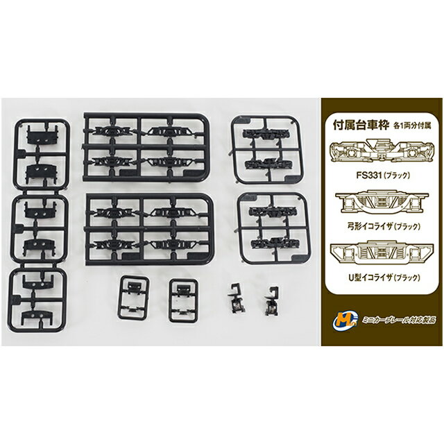 仕様 ・軸距約14mm/台車間距離約66mm/車輪径5.6mm ・全軸集電(ゴムタイヤ付) ・両台車駆動方式 ・フライホイール搭載 ・銀車輪 ・ミニカーブレール対応 付属品 ・黒台車枠3種(FS331・弓型イコライザ・U型イコライザ) ・床下スペーサー ・アーノルドカプラーユニット×2 ・カプラースペーサー×2