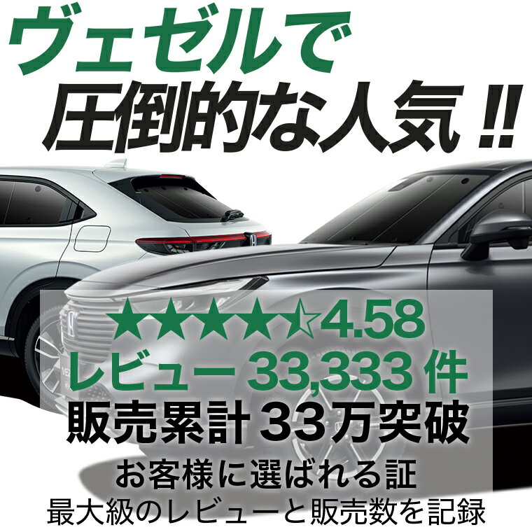 ★話題の車中泊グッズ!車内を完全に見えなくしてくれるサンシェードなら「あなただけの空間」が思いのままに♪ ★防水・遮光プライバシーサンシェード登場!車内の着替え,宿泊、盗難防止、エアコン安定による燃費向上!注目のアイズテック、マルチな機能を備えたシェード!カーテンタイプと違ってレールを付ける必要もございません。吸盤による簡易脱着なので誰でも簡単に何度でも装着できます。キャンプ、海、サーフィン、スノボ、スキーに大活躍です! 【商品内容】 1.フロントガラス1枚 2.サイドドアガラス2枚 3.後部座席ドアガラス2枚 4.リアガラス1枚 ※リアセットも別途販売しております。 ※フロントセットも別途販売しております。 【適合車種】 ★ヴェゼル RV3/6型 e:HEV RV3 RV4 RV5 RV6 ※各グレードも上記適合車種とおなじガラス形状であれば装着可能です。 ※フロントサンシェードを取り付けの際、運転席・助手席に装備されているサンバイザーで固定すると便利です。 ■商品の特徴■1.光りを遮断 【特殊生地で光りをカットします。エアコンも快適に使え、燃費向上効果】2.防水機能 【ガラス面に付着した霜でサンシェードを濡らさないよう防水生地を採用】3.クッション機能 【芯材に軽量クッション素材を使用。ガラスの傷防止にも役立ちます】4.脱着が簡単 【簡易吸盤を使用しますので脱着が簡単です】5.低価格実現 【車用カーテンに比べ低価格です。※レールの施工も不要】6.収納可能 【使用しないとき収納できるよう折りたためます】7.とっても軽い 【軽量ウレタンフォーム採用】 「プライバシーサンシェード」は趣味職人の登録商標(第5050940号)です。 車中泊やアウトドアで快適なプライバシー空間を提供するサンシェードです。UVカット機能で紫外線を遮断し、車内のインテリアやダッシュボードを守ります。断熱性に優れた高品質素材を使用し、夏の暑さ対策や冬の防寒・保温に効果的です。軽自動車から標準ボディ車まで幅広く対応し、簡単取り付けが可能。使用しない時は折りたたんでコンパクトに収納でき、持ち運びも便利。車中での仮眠や休憩時に最適で、盗難防止効果も期待できます。さらに、このサンシェードは信頼の日本製で、耐久性も抜群です。 ■デメリット表記■ フロントガラスは点検シールやTVアンテナが貼られており吸盤が吸着しずらくなっています。サンシェード装着前に吸着位置にベースシール(別売)を貼るか点検シール、TVアンテナの位置を変更するなどお客様ご自身で施工いただきますようお願いします。フロンガラスは湾曲しているためサンシェードのフィッティングが不安定です。隙間、シワが出やすくなっておりますので予めご了承ください。※本デメリットに関する購入後のクレームは一切受付けできません ■注記■1.本商品は取り付け不可以外のクレーム、返品等お受けできません。(本製品はドライブレコーダー対応品ではありません。サンシェードを上から覆いかぶせて装着できる場合がございますが、ドライブレコーダーがあるから装着できないというクレームはお受けできませんのでご注意ください。)2.走行中は視界のさまたげになりますので絶対にご使用にならないでください。3.本商品は簡易吸盤で装着するためガラス面と隙間がでる場合がございます。 ※完全に光りを遮断、外から見えなくなるわけではありませんのでご注意ください。4.吸盤がガラス面につきにくい時は表面に水分を含ませると効果的です。5.スモークフィルム等を装着している場合は吸盤の脱着に細心の注意をはらってください。 ※吸盤のつまみ部分を引き上げると空気が入り簡単に取り外せます。6.生地やウレタンフォームののびちじみによってシワが生じる場合がございます。7.プライバシーサンシェードは1.0cm~1.5cm程度の縫製誤差が生じます。若干の隙間が発生する場合もございますので予めご了承下さい。8.フロントガラスは角度がありサンシェードがたわみやすくなっております。上下に引っぱりながらご着用ください。 ■吸盤お取り付けに関するご注意■リアハッチの熱線、ガラス張り付け型アンテナ、メーカー取扱い注意シール等、吸盤吸着の妨げになるものがある場合、(別売)吸盤用ベースシールをご設置ください。※お風呂場で使うベースシールが最適です。ホームセンターでご購入いただけます。なお製品に付属しております簡易吸盤は梱包状況によって変型している場合がございます。熱いお湯に数分つけて元の形に直してからお使いください。 ■類似品にご注意ください■最近、"プライバシーサンシェード"に酷似した類似商品やコピー商品がオークション、ネットショップで販売されております。見分けがつきにくい為、一部のお客様に誤解とご迷惑をおかけしております。これらの類似品は"プライバシーサンシェード"では御座いませんのでご注意下さい。偽物、コピー品の見分け方は、商品名に"プライバシーサンシェード”(登録第5050940号)と記載があるか