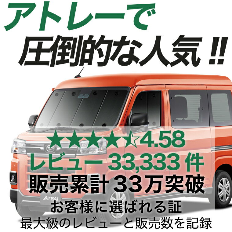 ★話題の車中泊グッズ!車内を完全に見えなくしてくれるサンシェードなら「あなただけの空間」が思いのままに♪ ★防水・遮光プライバシーサンシェード登場!車内の着替え,宿泊、盗難防止、エアコン安定による燃費向上!注目のアイズテック、マルチな機能を備えたシェード!カーテンタイプと違ってレールを付ける必要もございません。吸盤による簡易脱着なので誰でも簡単に何度でも装着できます。キャンプ、海、サーフィン、スノボ、スキーに大活躍です! 【商品内容】 1.フロントガラス1枚 2.サイドドアガラス2枚 ※リア用も別途販売しております。 【適合車種】 ★アトレー S700V S710V ※デッキバンは対応しません ※各グレードも上記適合車種とおなじガラス形状であれば装着可能です。 ※フロントサンシェードを取り付けの際、運転席・助手席に装備されているサンバイザーで固定すると便利です ■商品の特徴■1.光りを遮断 【特殊生地で光りをカットします。エアコンも快適に使え、燃費向上効果】2.防水機能 【ガラス面に付着した霜でサンシェードを濡らさないよう防水生地を採用】3.クッション機能 【芯材に軽量クッション素材を使用。ガラスの傷防止にも役立ちます】4.脱着が簡単 【簡易吸盤を使用しますので脱着が簡単です】5.低価格実現 【車用カーテンに比べ低価格です。※レールの施工も不要】6.収納可能 【使用しないとき収納できるよう折りたためます】7.とっても軽い 【軽量ウレタンフォーム採用】 「プライバシーサンシェード」は趣味職人の登録商標(第5050940号)です。 車中泊やアウトドアで快適なプライバシー空間を提供するサンシェードです。UVカット機能で紫外線を遮断し、車内のインテリアやダッシュボードを守ります。断熱性に優れた高品質素材を使用し、夏の暑さ対策や冬の防寒・保温に効果的です。軽自動車から標準ボディ車まで幅広く対応し、簡単取り付けが可能。使用しない時は折りたたんでコンパクトに収納でき、持ち運びも便利。車中での仮眠や休憩時に最適で、盗難防止効果も期待できます。さらに、このサンシェードは信頼の日本製で、耐久性も抜群です。 ■デメリット表記■ フロントガラスは点検シールやTVアンテナが貼られており吸盤が吸着しずらくなっています。サンシェード装着前に吸着位置にベースシール(別売)を貼るか点検シール、TVアンテナの位置を変更するなどお客様ご自身で施工いただきますようお願いします。フロンガラスは湾曲しているためサンシェードのフィッティングが不安定です。隙間、シワが出やすくなっておりますので予めご了承ください。※本デメリットに関する購入後のクレームは一切受付けできません ■注記■1.本商品は取り付け不可以外のクレーム、返品等お受けできません。(本製品はドライブレコーダー対応品ではありません。サンシェードを上から覆いかぶせて装着できる場合がございますが、ドライブレコーダーがあるから装着できないというクレームはお受けできませんのでご注意ください。)2.走行中は視界のさまたげになりますので絶対にご使用にならないでください。3.本商品は簡易吸盤で装着するためガラス面と隙間がでる場合がございます。 ※完全に光りを遮断、外から見えなくなるわけではありませんのでご注意ください。4.吸盤がガラス面につきにくい時は表面に水分を含ませると効果的です。5.スモークフィルム等を装着している場合は吸盤の脱着に細心の注意をはらってください。 ※吸盤のつまみ部分を引き上げると空気が入り簡単に取り外せます。6.生地やウレタンフォームののびちじみによってシワが生じる場合がございます。7.プライバシーサンシェードは1.0cm~1.5cm程度の縫製誤差が生じます。若干の隙間が発生する場合もございますので予めご了承下さい。8.フロントガラスは角度がありサンシェードがたわみやすくなっております。上下に引っぱりながらご着用ください。 ■吸盤お取り付けに関するご注意■リアハッチの熱線、ガラス張り付け型アンテナ、メーカー取扱い注意シール等、吸盤吸着の妨げになるものがある場合、(別売)吸盤用ベースシールをご設置ください。※お風呂場で使うベースシールが最適です。ホームセンターでご購入いただけます。なお製品に付属しております簡易吸盤は梱包状況によって変型している場合がございます。熱いお湯に数分つけて元の形に直してからお使いください。 ■類似品にご注意ください■最近、"プライバシーサンシェード"に酷似した類似商品やコピー商品がオークション、ネットショップで販売されております。見分けがつきにくい為、一部のお客様に誤解とご迷惑をおかけしております。これらの類似品は"プライバシーサンシェード"では御座いませんのでご注意下さい。偽物、コピー品の見分け方は、商品名に"プライバシーサンシェード”(登録第5050940号)と記載があるかをお確かめください。品質について、縫製はMade in Japan、繊維大手メーカーの高