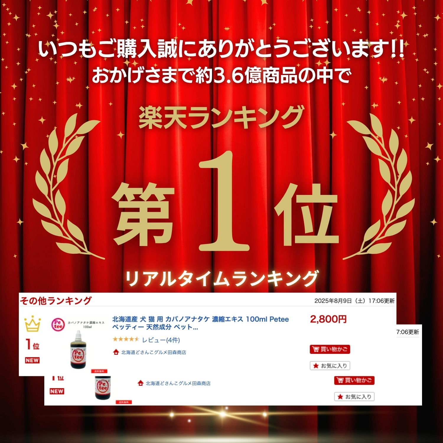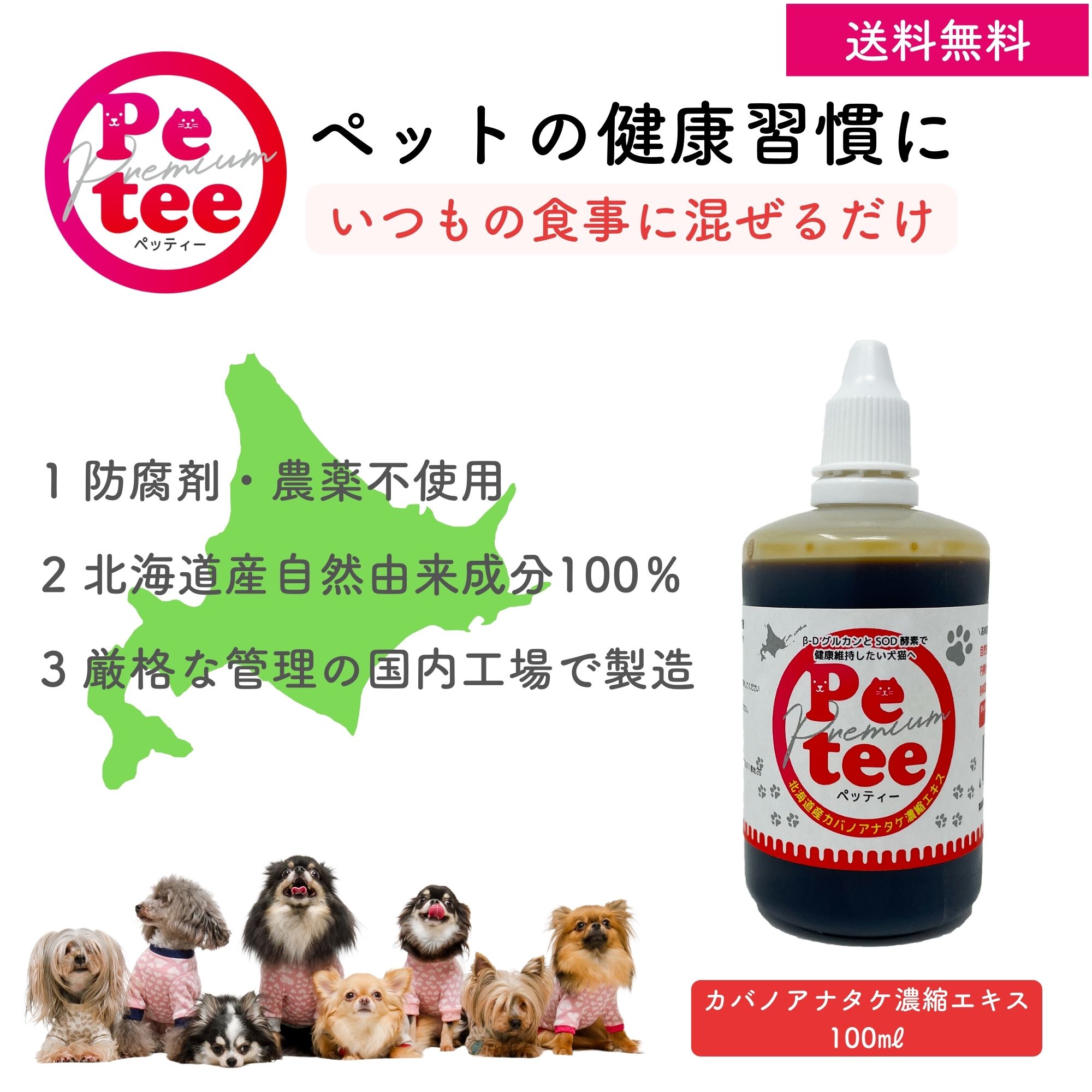 北海道産 犬 猫 用 カバノアナタケ 濃縮エキス 100ml Petee ペッティー 天然成分 ペット用 無添加 健康維持 ご飯や飲み水に混ぜるだけ カバタケ茶 国産 幼犬 幼猫 成犬 成猫 老犬 老描
