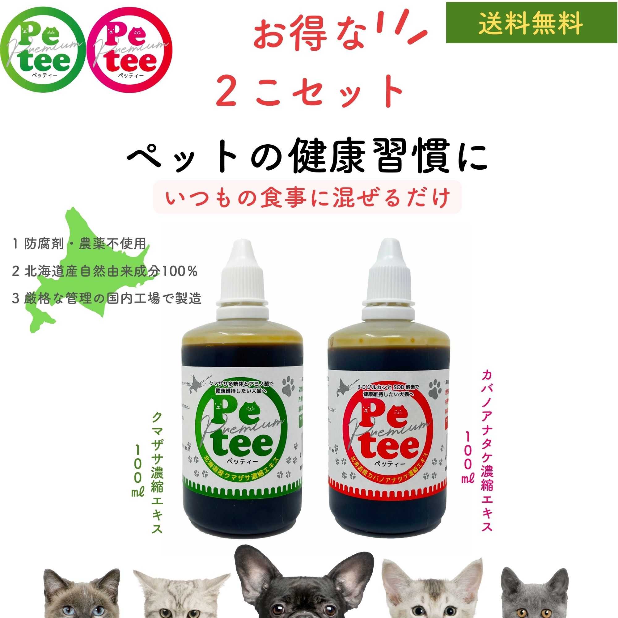 \全商品に使えるクーポン配布中/北海道産 犬 猫 用 クマザサ と カバノアナタケ 濃縮 エキス のセット 各100ml Petee ペッティー 天然成分 ペット用 無添加 口腔ケア ご飯や飲み水に混ぜるだけ 健康維持 国産 幼犬 幼猫 成犬 成猫 老犬 老描