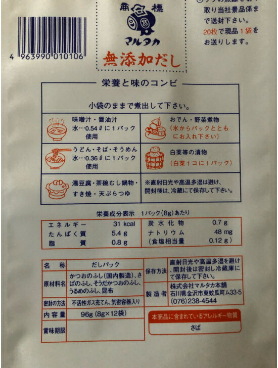 マルタカ本舗 無添加食品 だしパック 12包 10個(1ケース) 宅配60サイズ
