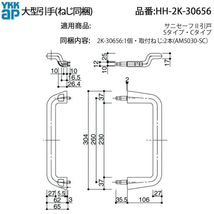 YKK AP 浴室引戸 大型引手 HH-2K-30656 交換用 開閉しづらい・つかみにくい サニセーフII 引手不良 改善 室内側 ハンドル破損 修理 補修 純正パーツ 掴みにくさや開閉の重さを解消する交換用ハンドル