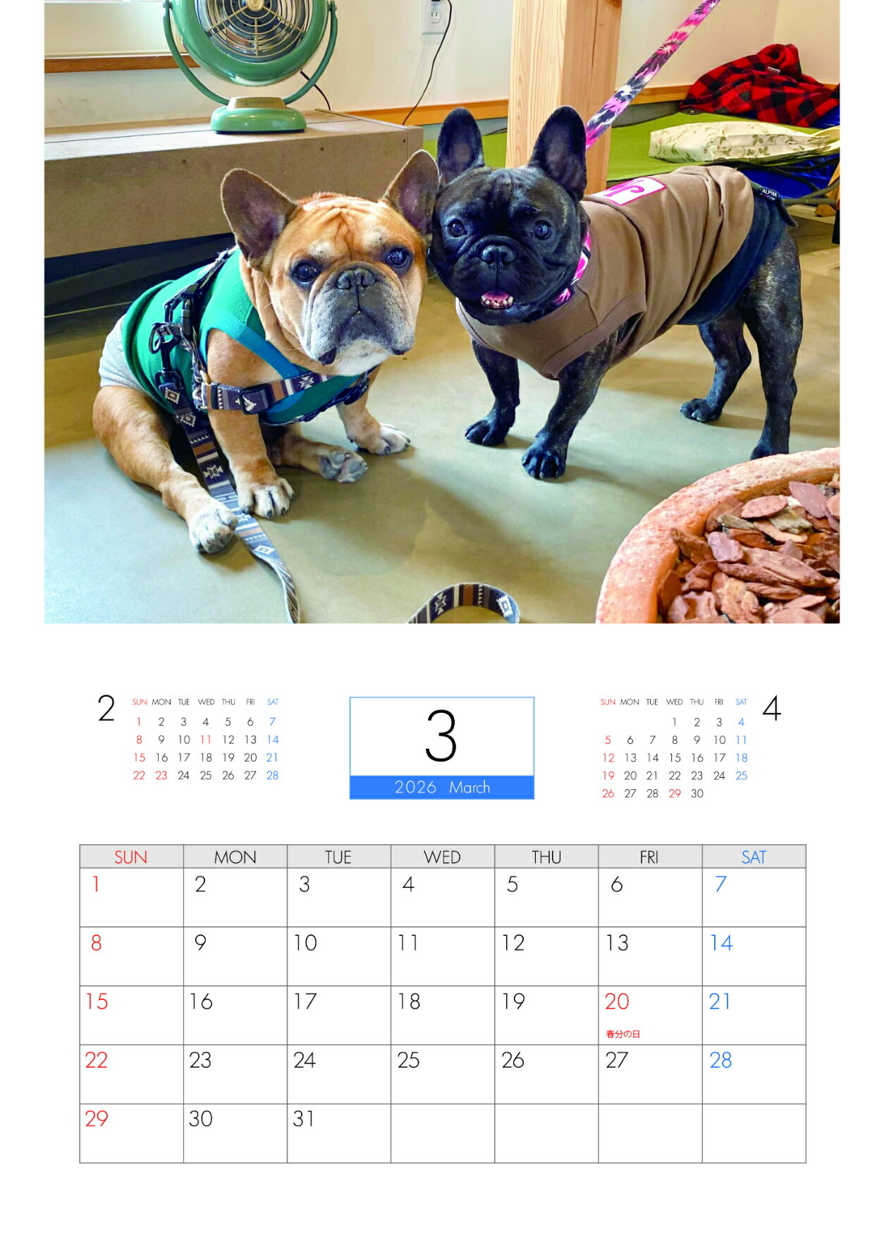 【予約販売】 フレンチブルドッグ torus トーラス 犬 2026年 壁掛け カレンダー KK26034
