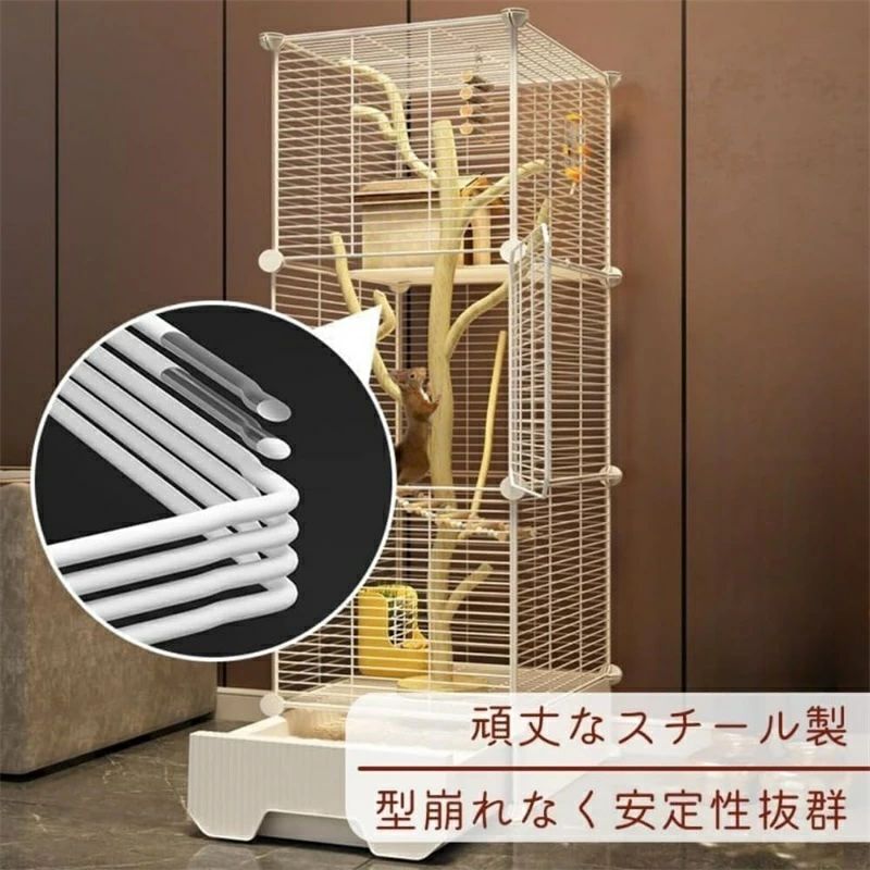 リスケージ 3段 37*37*125cm 大型、引き出し トレイ フクロモモンガ シマリス デグー フェレット 小動物ケージ 大型 垂直 金網