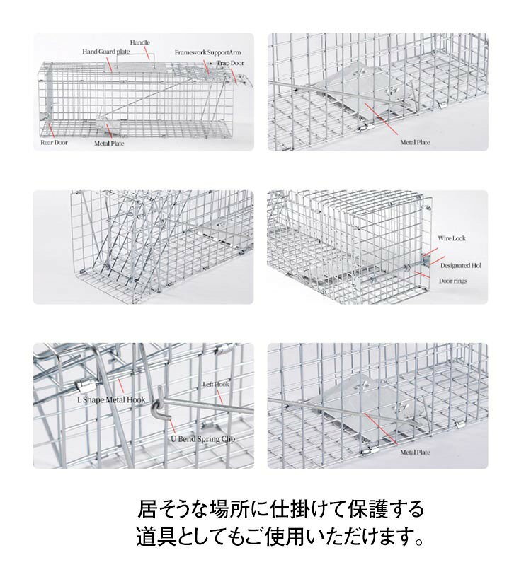 捕獲器 猫の保護器 踏板式動物捕獲器 安全簡単優しい設計 野良猫保護 TNR活動 不妊去勢 捕獲カゴ 小動物保護 家庭菜園 害獣対策 イノシシ アナグマ タヌキ ハクビシン アライグマ 農作物保護 花壇菜園防護 折り畳み収納