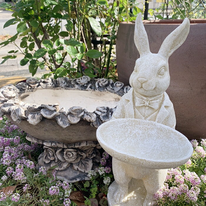 3980円(税込)以上で送料無料。一緒にいかがですか?アリスの世界にようこそ♪ タキシードを着た格好は不思議の国のアリスみたい♪ バラ好きに方にお勧めのシックで可愛いプランターと一緒に お庭にフォーカスポイントを! スタンディングバニーはポリレジンという軽い樹脂製です。 製品特性によりまれに細かい気泡が生じる場合があますバードバスという名称ですが 完全防水をお約束するものではありませんのでご了承ください。 ご使用前に防水用のクリアラッカーなどで保護されますと長くキレイに使っていただけます。 その際には目立たない箇所でお試しください。 ローズプランターは植物が植えられるよう底に穴が開いています。 植物を植えても、置くだけでもおしゃれに飾れます。 セット商品名・型番 【商品名・型番】 スタンディングバニーS&ローズプランタM(P-7576-13704) 商品詳細 【商品名・型番】 スタンディングバニーS(P-7576) 【色・柄】 アイボリー色(写真をご覧ください) 【サイズ(mm)】 W15×D20cm×H40cm 【重量】 1kg 【材質】 ポリレジン製 商品詳細 【商品名・型番】 ローズプランターM(13704) 【色・柄】 カラー色(写真をご覧ください) 【サイズ(mm)】 約W36×D23×H21cm 【重量】 約2kg 【材質】 陶器 ※その他のオーナメント・小物・バードバスはこちらからどうぞ↓↓↓ ※在庫が表示されていても他のモール・実店舗で完売してしまう場合が稀にございます。 一部商品が欠品になった場合はメールにて購入の意思を確認させていただきます。 その際、新たに送料が掛かる場合もございますのでメール内容を十分ご確認ください。