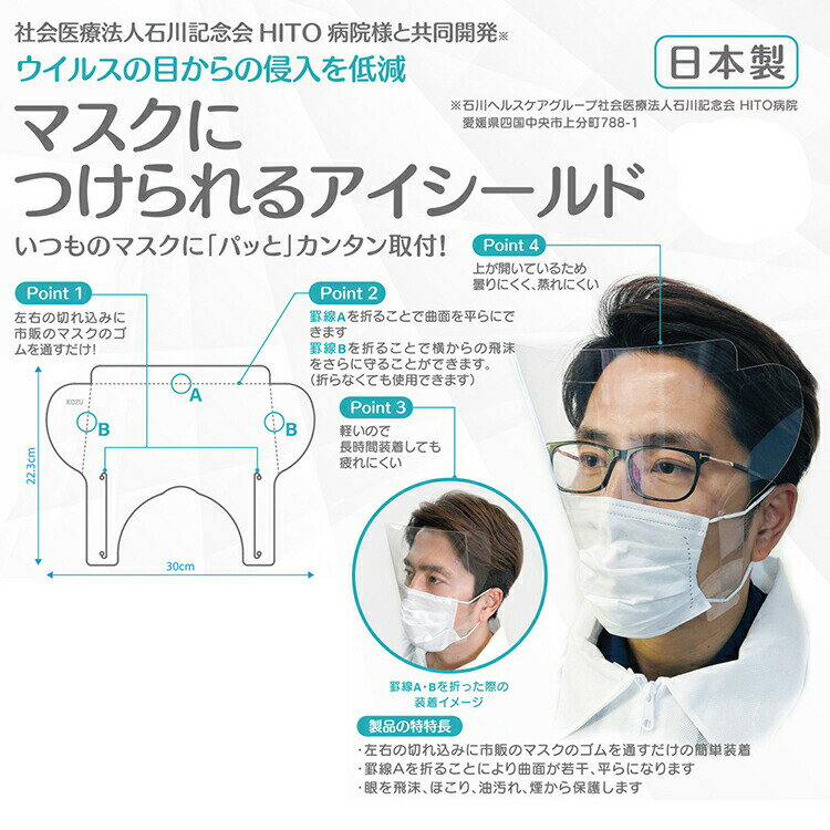 【送料無料】 高津紙器 マスクにつけれるアイシールド 日本製 10枚組 クリア 約22.3cm×30cm
