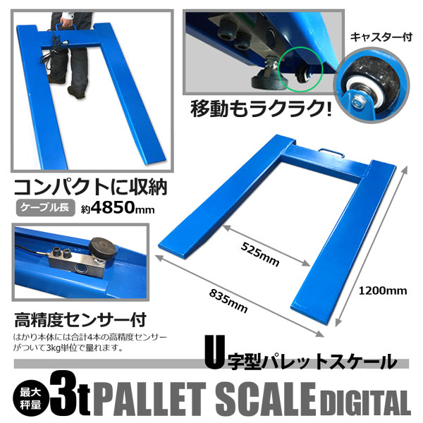 パレットスケール U字型 3000kg フロアスケール デジタル式 3t 台はかり測量 倉庫 工場の荷物移動 荷揚げ 積み込み