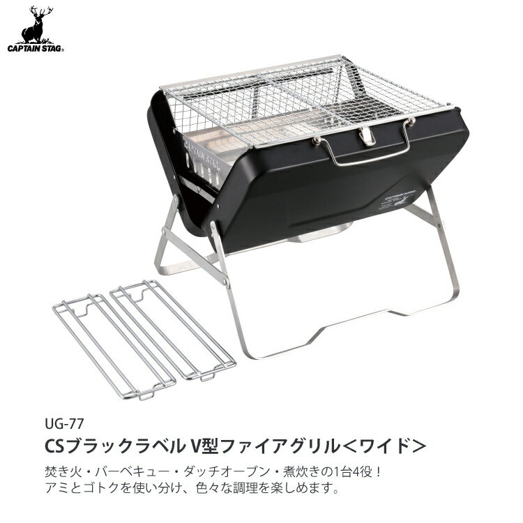 キャプテンスタッグ UG-77 CSブラックラベル V型ファイアグリル<ワイド>(BBQコンロ)(CAPTAIN STAG)(ラッピング不可)
