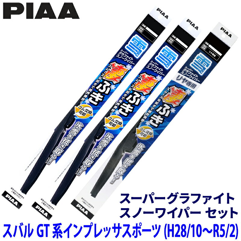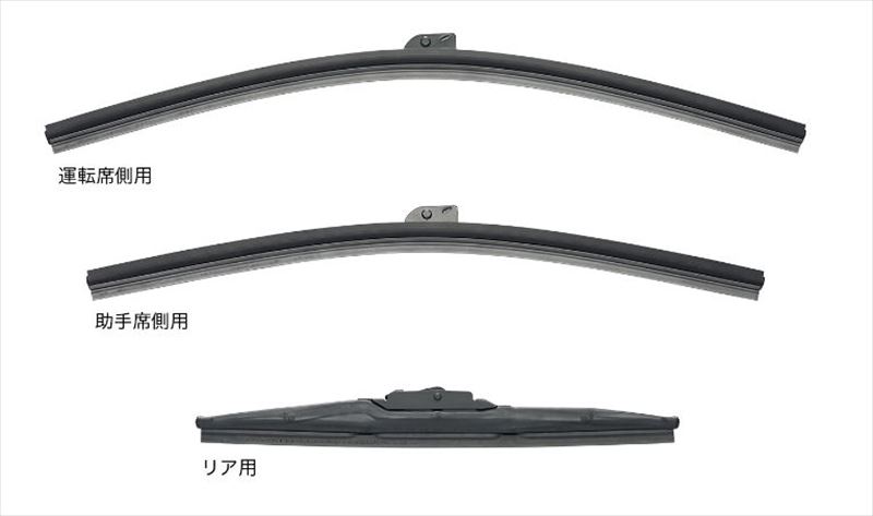 PIAA ピア雪用ワイパー グラファイトタイプスーパーグラファイトスノー 氷雪をスパット拭き取り視界良好! スーパーグラファイトコーティングゴムを採用した雪専用ワイパー。スーパーグラファイトコーティングにより、スムーズな拭き、優れた静粛性を発揮。 氷、雪、前方車や対向車の泥はねなどをスパット拭き取ります。 フレームには、錆びにつよい高純度ステンレス製を採用した、タフネス構造。安定した払拭性能を確保します。 そして、PIAAだけがもつ技術。替えゴム交換機能をもつスノーブレードです。リヤ専用もラインナップしています。 ●長さ設定:190mm〜700mm フロント用(運転席・助手席)とリア用のワイパーをセットにしました。 セット内容:WG53W(呼番11)、WG38W(呼番4)、 WG25KSW(呼番16KS)。 トヨタ ライズ/ダイハツ ロッキー(R1.11〜)(型式:A200A/A201A/A202A/A210A/A200S/A210S)にてご使用いただけます。 ※こちらのワイパーセットは、純正品より寸法が短くなる箇所がございます。あらかじめご了承ください。