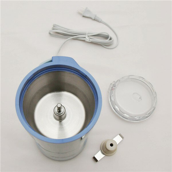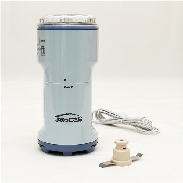 保証情報 等 ▼万能 こなひき器 NEW よめっこさん Y-308B 【メーカー保証】1年間 ※保証書は取扱説明書裏表紙に掲載 【付属品】取扱説明書(保証書付) 【生産国】日本 【食生活を通じて健康づくり】 【商品説明】 ★強いパワー 『カカオが粉砕出来る力強いモーターとカッター』 「大豆」など硬い豆類から「茶葉」や「煮干し」などなど用途に合わせて粉砕(粉)します。日々のお料理からクリスマス・バレンタインなどのお菓子作り・女子会など様々な場面で大活躍! ★お手入れらくらく 『取り外し可能なカッターとクリーンな容器内部』 粉砕カッターは容器から取り外してお手入れ可能な構造。素材を入れる容器内部はステンレス製で清潔度に加え耐久性も高い構造となっています。 ★音も静かで安全設計 『高性能な220Wモーターを搭載』 モーターメーカーならではの力強く静かな動作。ふたや容器が所定の位置に装着されていない限り、電源が入らずモーターは回転しません。また1年保証と国内生産で安心。 ★手早く、おいしく、自慢のヘルシーメニュー 取扱説明書内にレシピ記載のためとっても便利。 【製品仕様表】 本体色 ブルー系 電源 AC-100V-50/60Hz 消費電力 220W 定格時間 3分 外形寸法(mm) 幅105×奥行113.5×高さ221.5 重量 1,380g 容器サイズ 300cc 保証期間 1年(※保証書は取扱説明書裏表紙に掲載) 付属品 取扱説明書(保証書付) 生産国 日本 ※性能の改善などにより、予告なしに仕様の一部を変更する場合がございます。