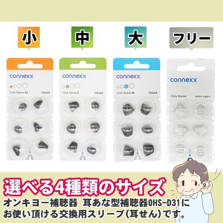 オンキヨー補聴器 OHS-D31交換用 耳栓(ドーム)サイズ選択式(フリー・小・中・大) 6個入り(メール便可:2点まで)