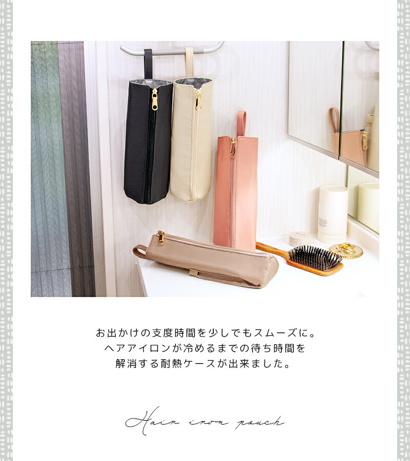 【楽天スーパーSALE】ヘアアイロンケース 耐熱300℃ ヘアアイロン 収納 ポーチ 持ち運び ミニ ヘアアイロンホルダー 吊り下げ&引っ掛け対応 コテ入れ ポケット付き スリム かわいい 旅行用 トラベル おしゃれ ヘアアイロンカバー 熱いまま 収納 トラベルポーチ【meru】