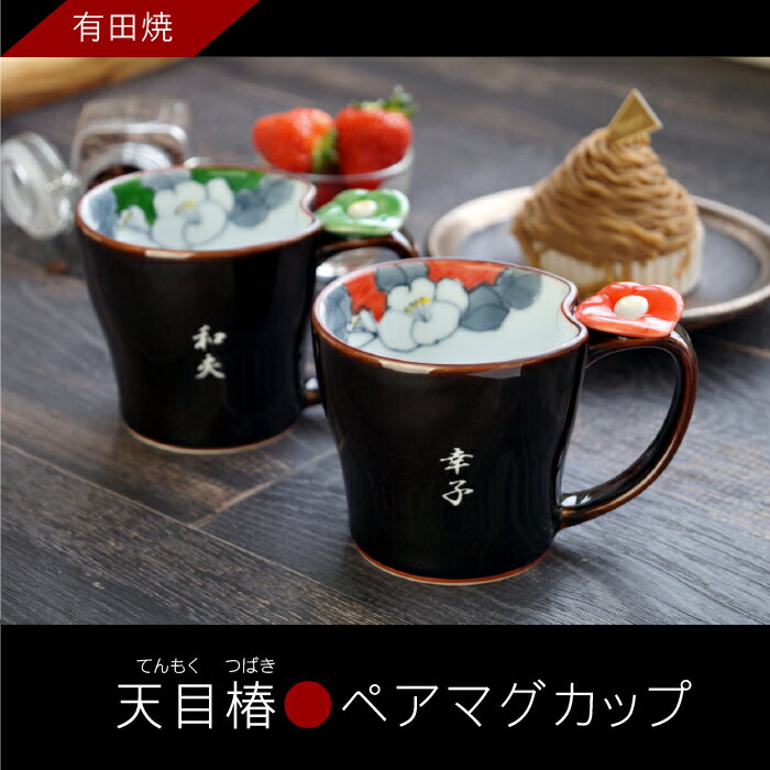マグカップ ペア ペアギフト 結婚記念日 プレゼント 両親 名入れ 【 有田焼 ペアマグ 天目椿 マグ カップ ペアセット 】 名前入り コーヒーカップ 誕生日 還暦 祖父 祖母 おじいちゃん おばあちゃん 古希 喜寿 米寿 お祝い ペアマグカップ 名 名前 入れ 入り クリスマス
